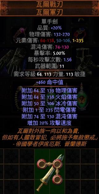 道具 PoE新版最強瓦爾戰刃、漢恩的期許、食蚜、海昂的狂怒幻夢飛羽七日鋒黑鯊影殞一文字