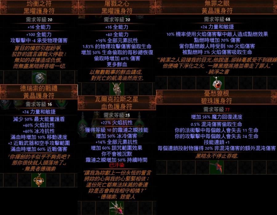道具 PoE傳奇-均衡之符、屠戮之心、無罪之眼、德瑞索的戰禮、瓦爾克拉斯之星、憂愁獠根