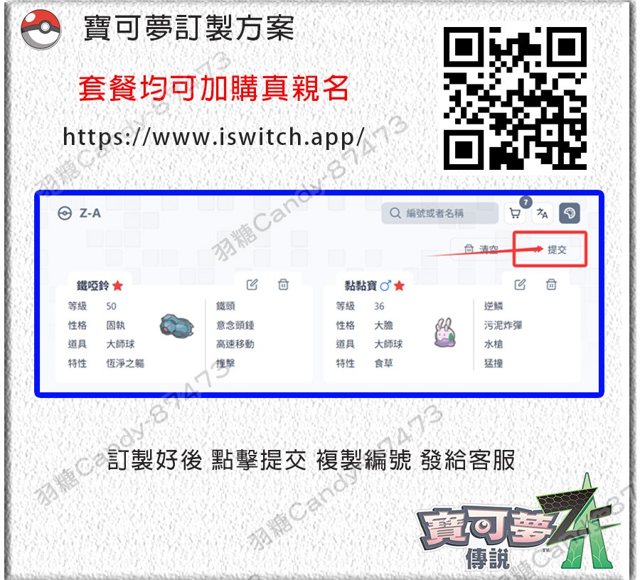 A. 獨家精選客製化 《寶可夢》 6v 滿糖100買5送1*真親名【傳送時會說寶可夢回家囉】