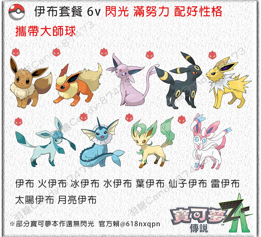 🎀『伊布套餐-9隻』6v 閃光 滿努力 初始等級 配好性格 甜蜜球種 攜帶特性道具/可選非色違-300