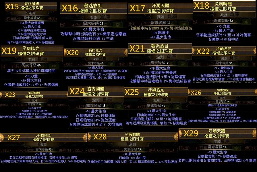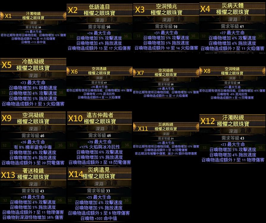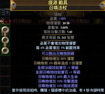2.召喚法杖:+1法術等級、+1召喚等級、召喚物25%攻速施放速、憎恨光環效果、66%召喚傷+5%2倍傷害、或其它