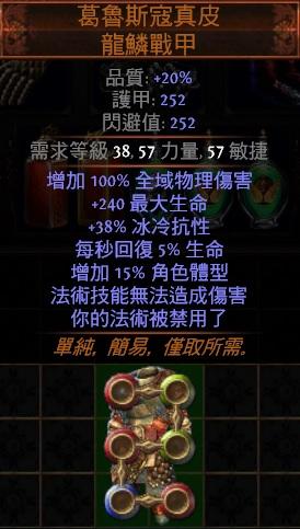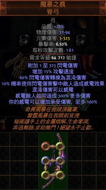 道具 😊PoE😊6L魔暴之痕.脊弓混沌感電300%更多傷害)葛魯斯寇真皮(角色體型