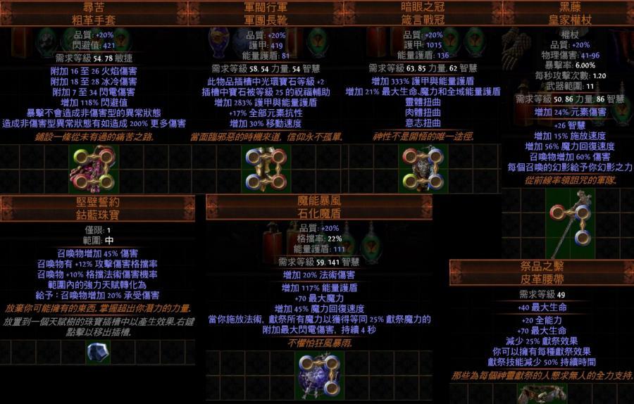 道具 😊PoE😊傳奇-尋苦、暗眼之冠、黑藤召喚、堅壁誓約、魔能暴風獻祭、祭品之繫