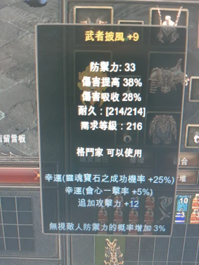 【賣】+9/12攻擊力(幸運)無視3% 武者披風(格鬥)-->請出價
