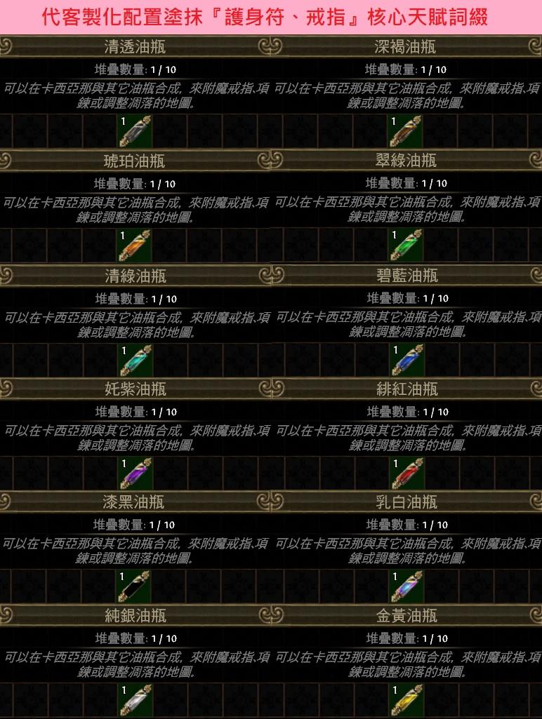 道具 汙染映像→金黃純銀乳白漆黑緋紅油瓶催化洶湧研磨冶鍊本質充能富饒多稜的催化劑