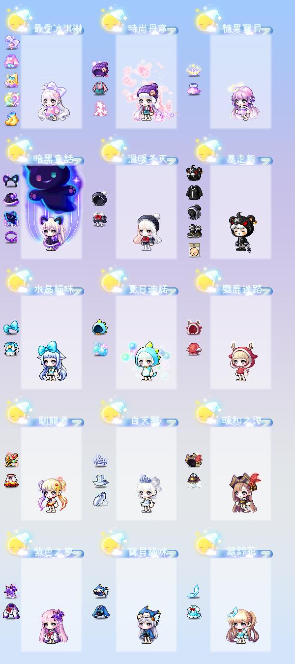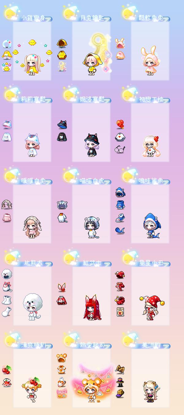 提問範本:「我想要山茶花的帽子/套服/鞋子/披風,請問現在方便嗎?」直接講名稱也可以~我會知道是哪件