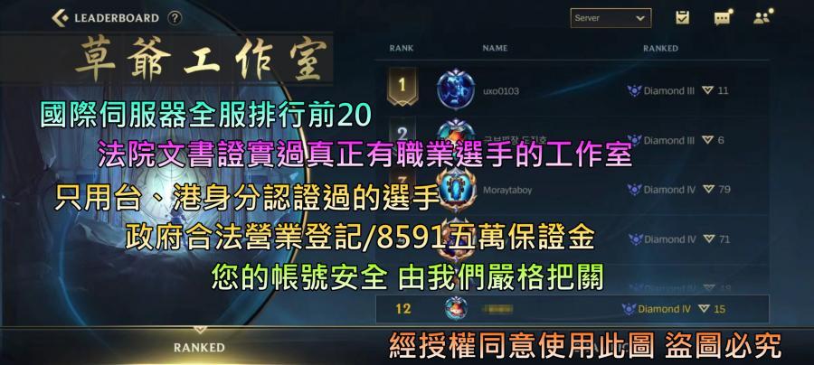 菁英/宗師/大師等牌位請一律小窗私訊由我們最強團隊為您服務