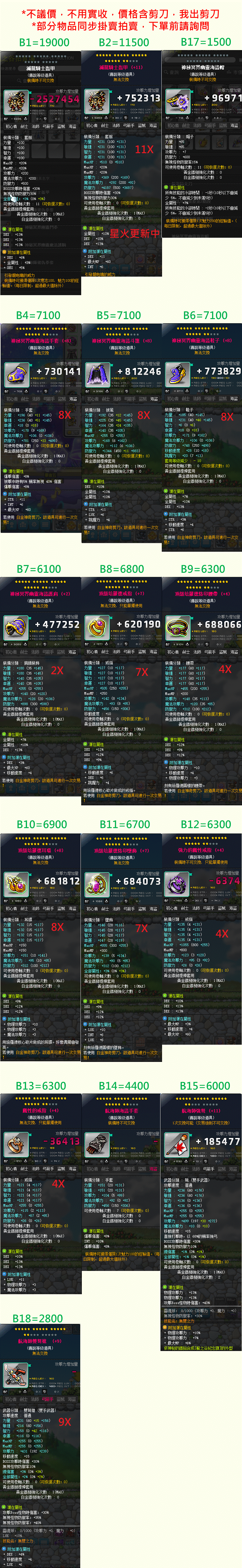 *不議價,數字為單價,不實收(不用加價/0.94),XXX=缺貨