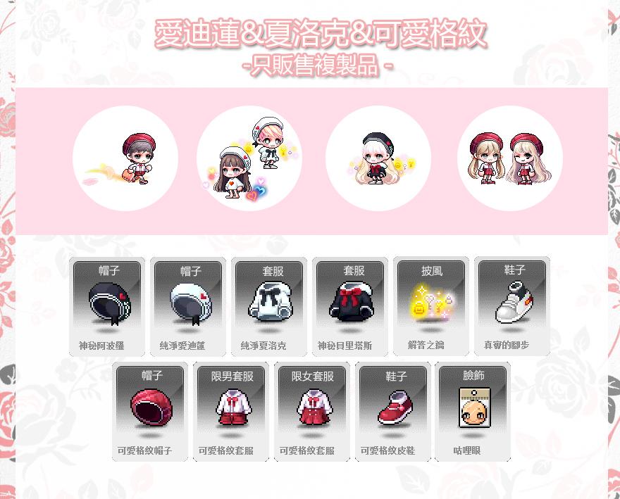 道具 【複製點裝】 純淨艾迪蓮❖神秘阿波羅❖純淨夏洛克❖神秘貝里塔斯❖可愛格紋帽❖可愛格紋套服❖