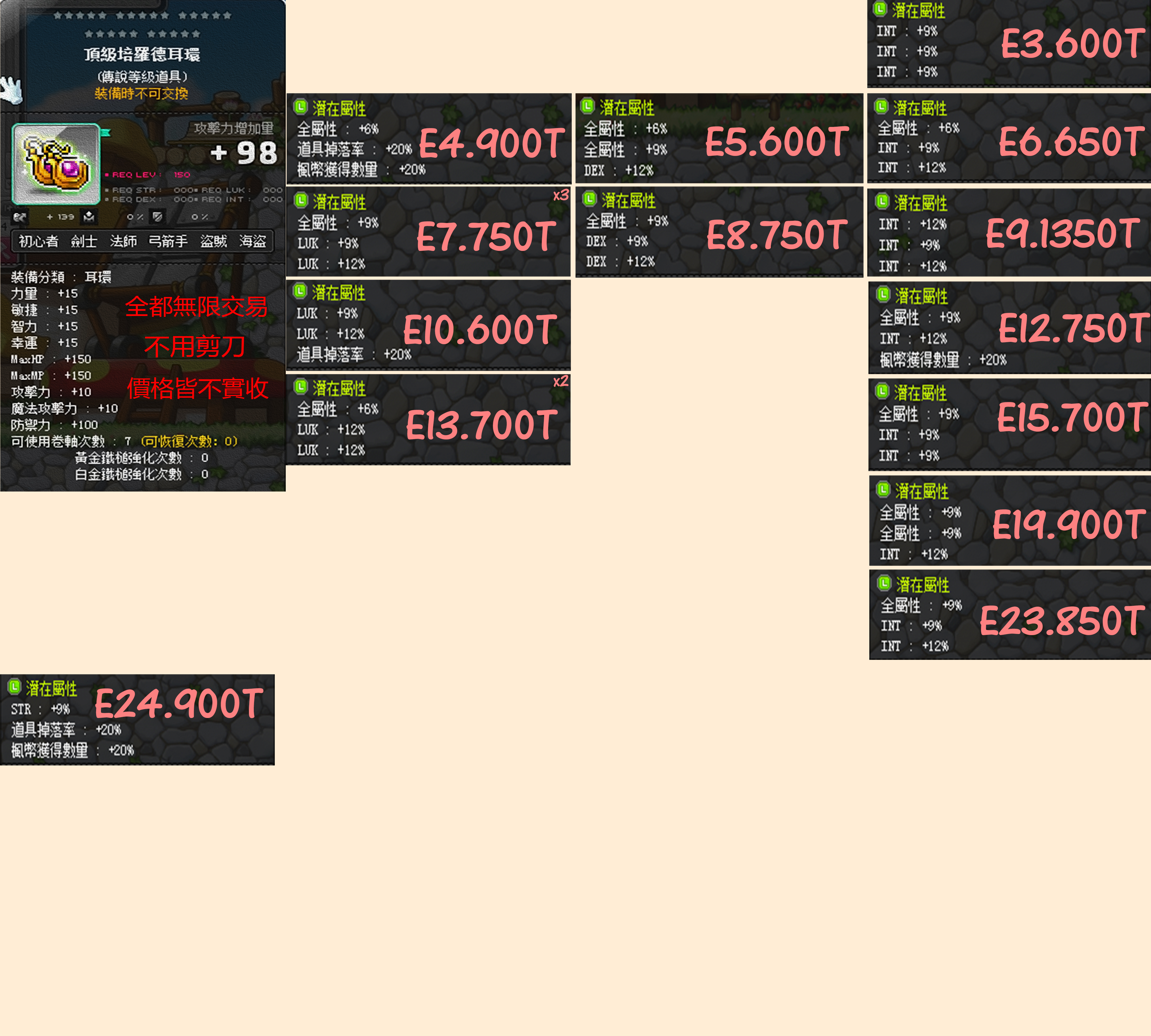 道具 【咖哩】 27%30%33%36%幸掉寶楓幣頂級培羅德頂鍊墜頂腰頂戒頂耳/大小魔性