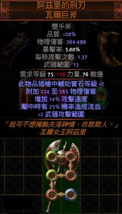 道具 【豐收*】 6L阿茲里的刑刃 瓦爾巨斧(女王斧)【輔助寶石等級+2】機率流血