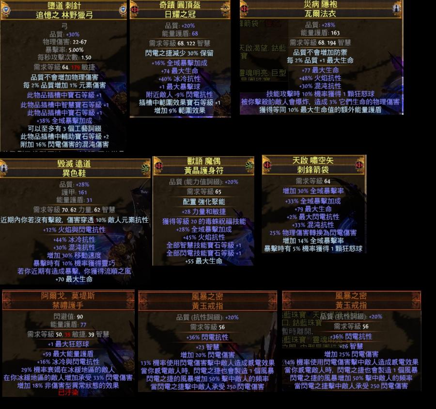 武器:+5寶石T1暴加成弓 頭盔:高血冰抗+1籃球減電抗暴加成