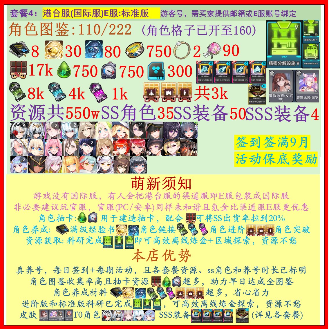 遊戲帳號內容已清楚打出來 沒打出來的皆為隨機附送 不要自己亂加東西 資源 再說帳號上怎沒有 後續出現問題 一律以賣家公布為主 介意勿買