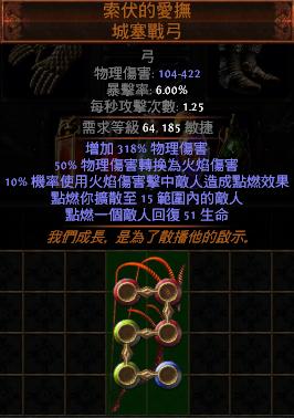 道具 【豐收*】 6L索伏的愛撫 城塞戰弓【物理轉火焰+機率點燃+點燃擴散+點燃回血】