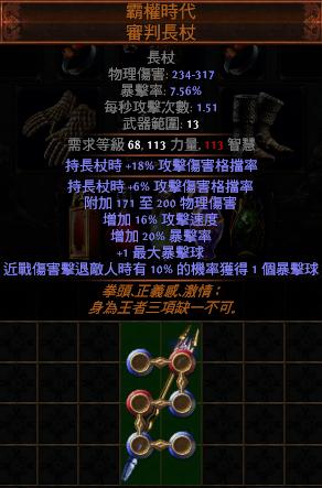 道具 【豐收*】 6L霸權時代 審判長杖【近戰傷害擊退敵人時有機率獲得暴擊球】+1暴擊球