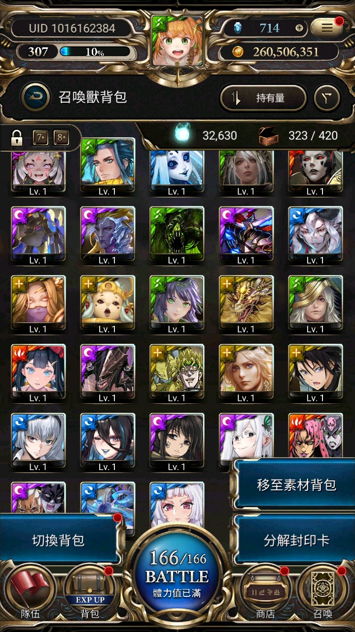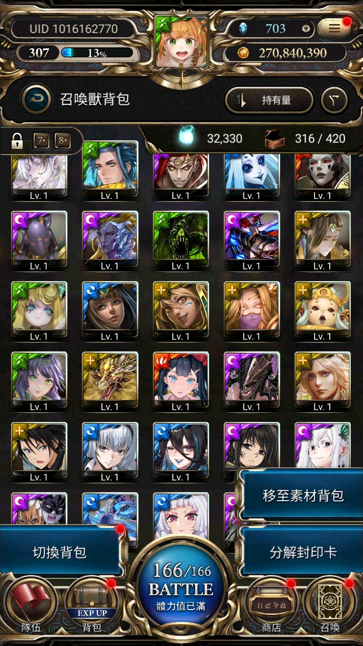 💎 I組 160級 過大部分副本 1500~1600石 +2~8隨機黑金+300up隨機石抽卡 1500元