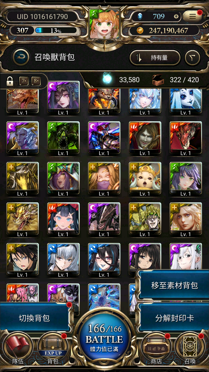 💎 推薦A01 魔法石1010~1110顆以上+隨機黑金2~8張+白金隨機450~550張+多素材+多大獎 +莉莉絲黑金(完成任務)+送滿登入7天送黑金35張抽卡卷 1190T零進度帳號