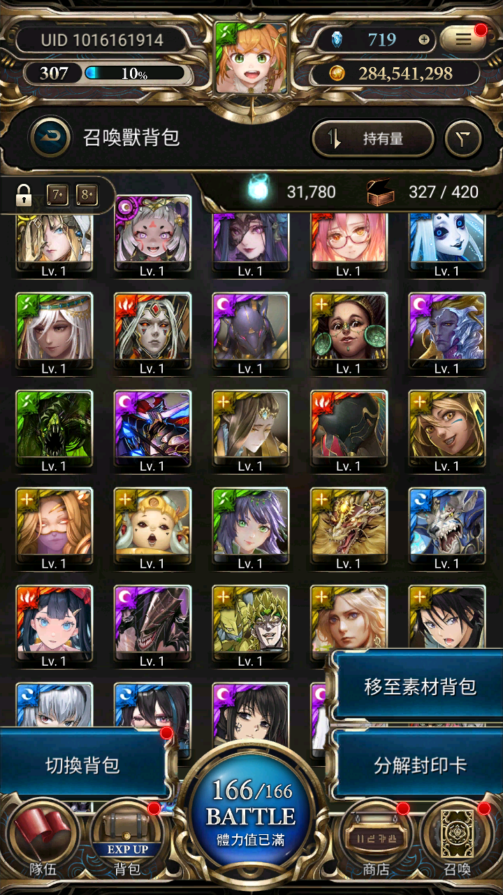 💎 推薦A01 魔法石1010~1110顆以上+隨機黑金2~8張+白金隨機450~550張+多素材+多大獎 +莉莉絲黑金(完成任務)+送滿登入7天送黑金35張抽卡卷 1190T零進度帳號