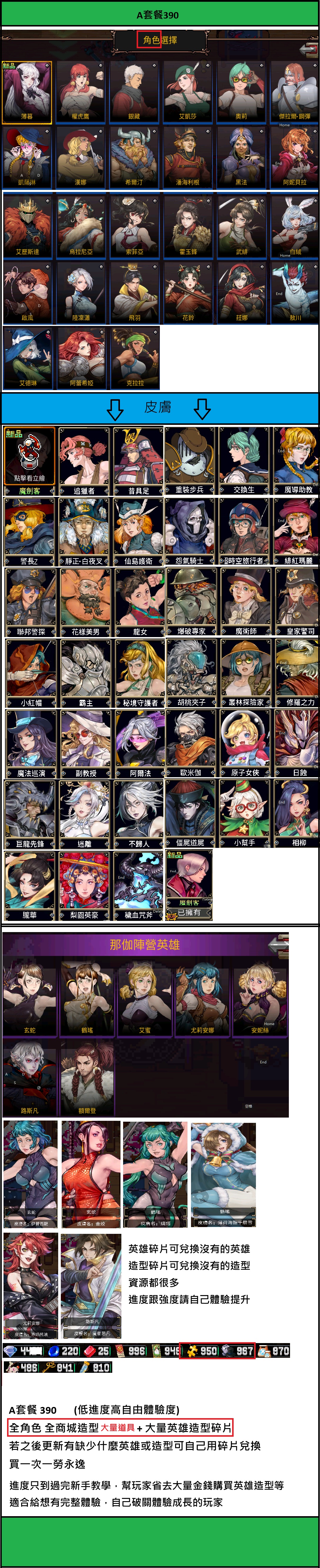 ♻️簡易預覽A套餐(全人物,皮膚,商城道具) 390T