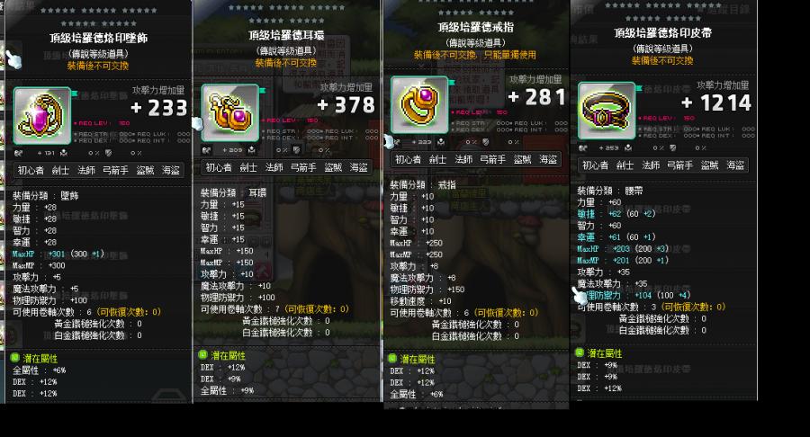 道具 【頂級培羅德】 120%敏頂級培羅德一套(頂腰頂墜頂戒頂耳主潛能都30%敏頂培)小資專用