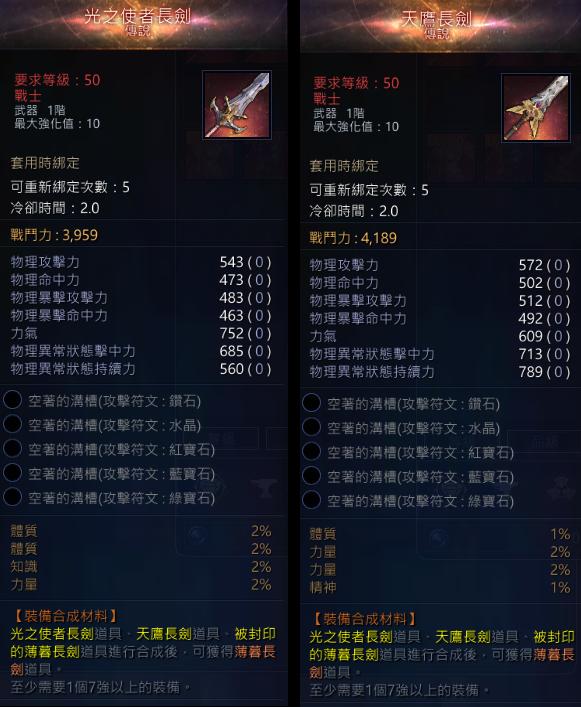 戰士光之長劍+天鷹長劍.可合成T2(薄暮長劍)