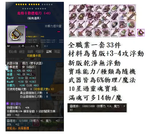 道具 10星9%8%戰地大全套[含最新職業凱殷][武器/副武/三武/防具/飾品]
