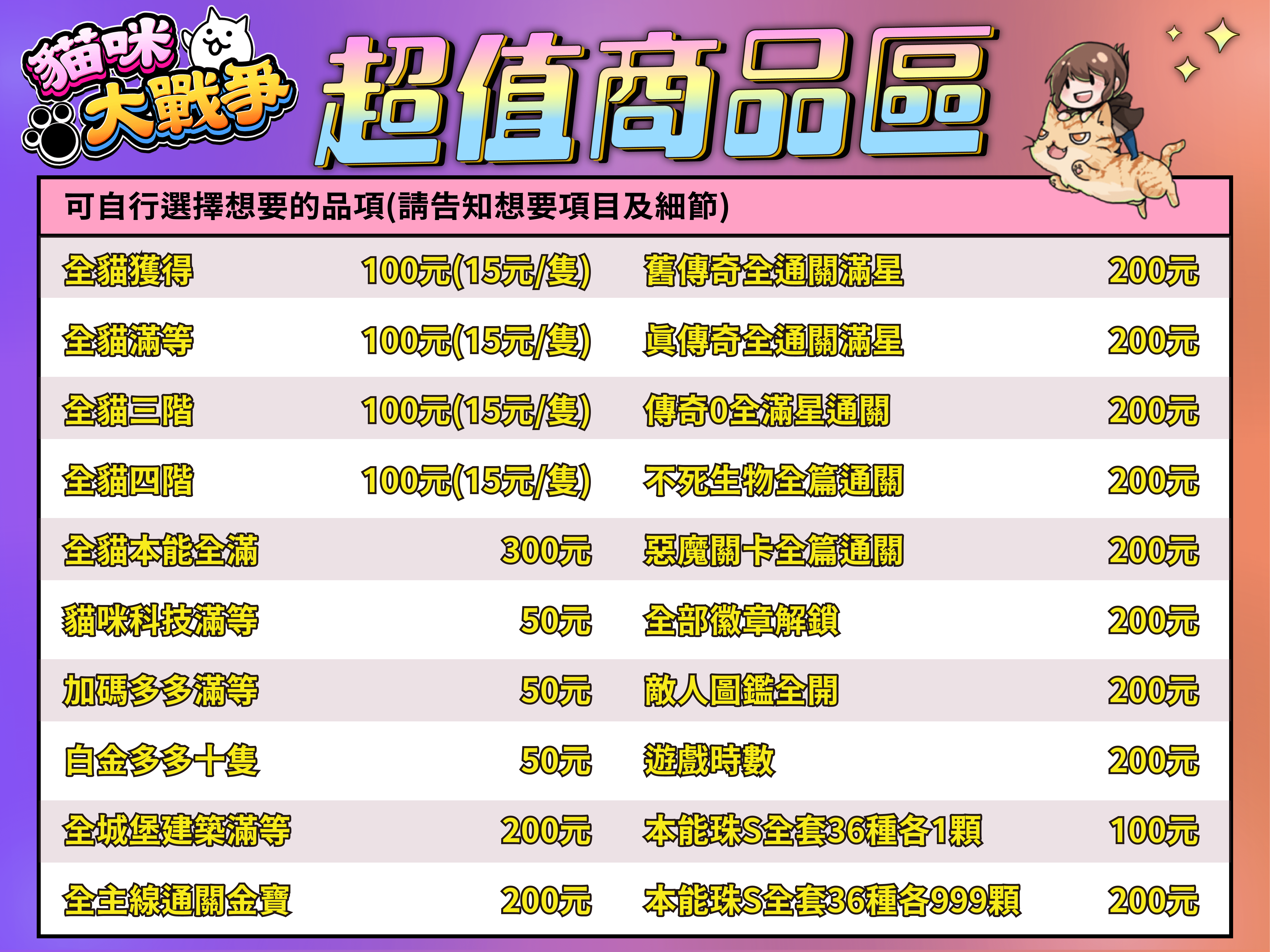 !!!!S套餐!!!! 全貓獲得+全貓滿等+全貓三階+無限多服務