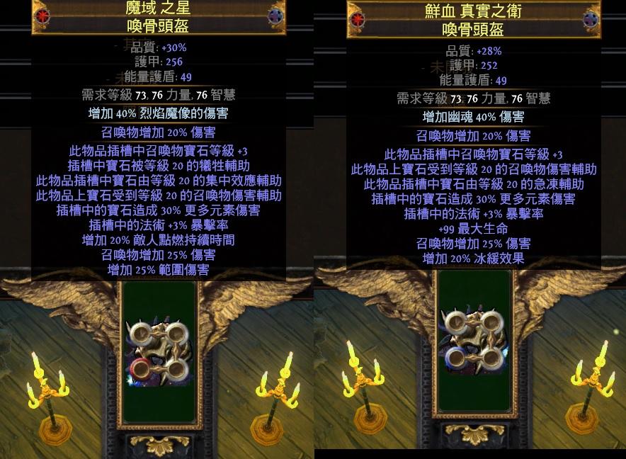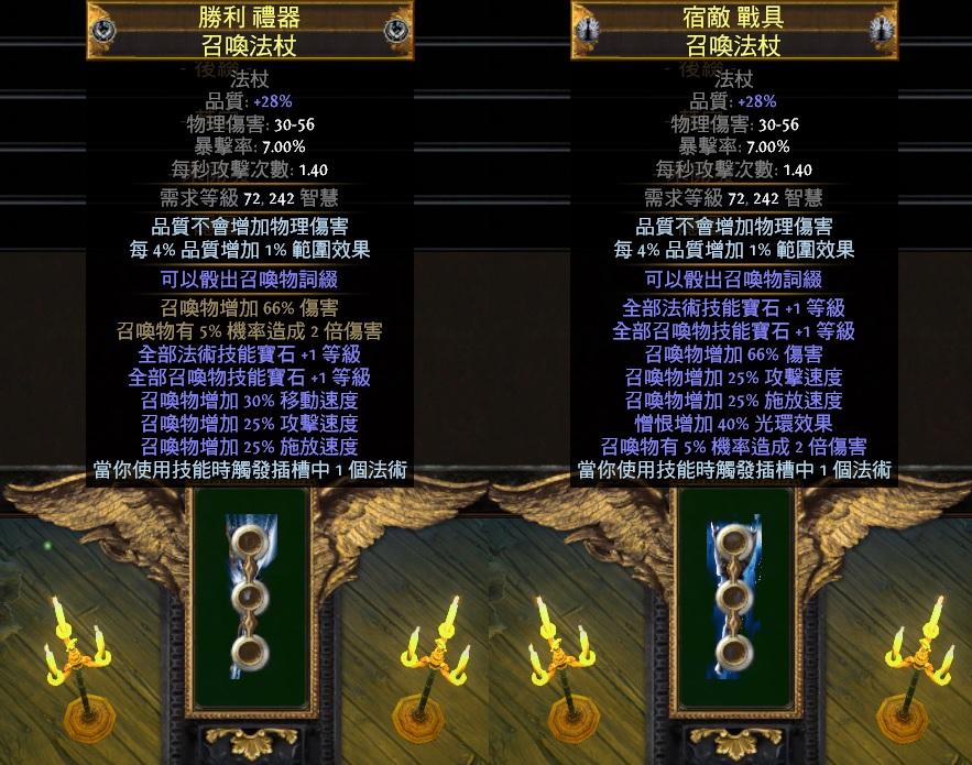 此插槽中寶石由等級20召喚物傷害輔助(T1頂數值詞綴)