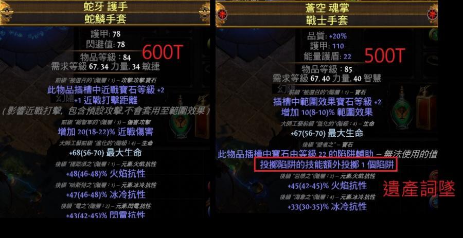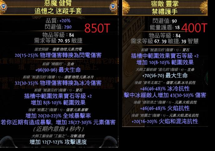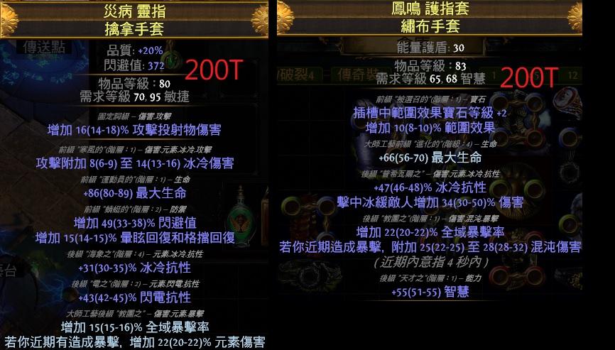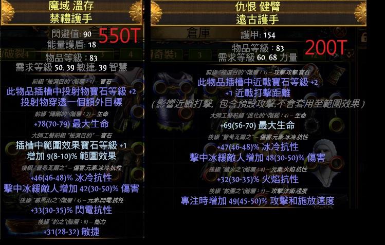 各式畢業手套 冰緩/範圍/投射/生命/抗性/命中/護盾/近戰.元素傷/物轉冰.電/打擊距離/+1陷阱