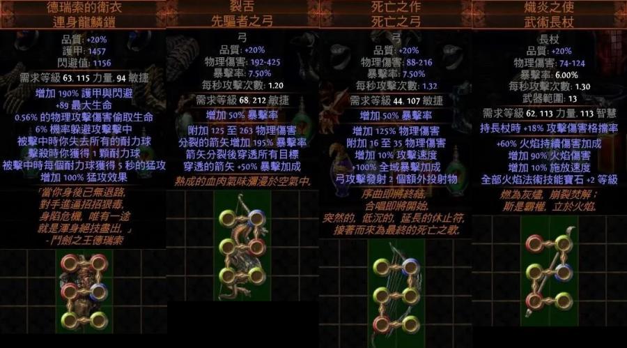 道具 PoE👌傳奇6L德瑞索紅球衣、裂舌、死亡之作弓、熾炎之使、宵曉風暴誓約審判