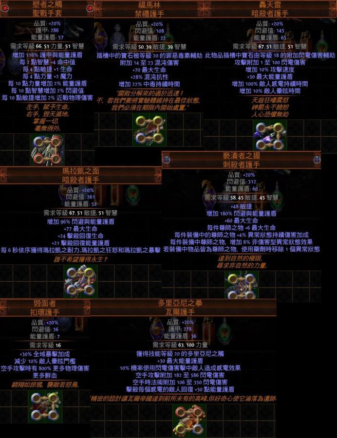 道具 新聯盟PoE→塑者之觸、福馬林、轟天雷、瑪拉凱之面、褻瀆者之握、毀面者打臉手套、