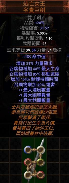 道具 逃亡傳奇PoE👌6L逃亡女王.名貴巨劍(增加1殭屍數量、幽魂數量、骷髏數量)
