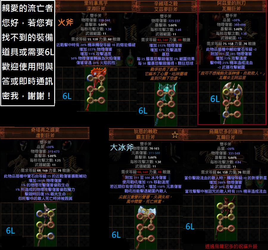 道具 【劫盜】 『雙手斧』女王斧、烏爾、狄恩 、奇塔、黑茲、亂世、王者、死神、收割、里特