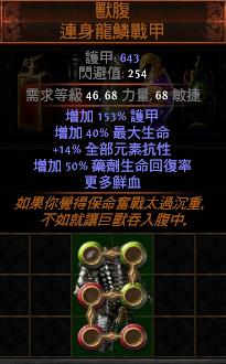 道具 【劫盜*】 6L獸腹 連身龍鱗戰甲【頂+40%最大生命+14%全部元素抗性】