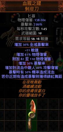 道具 【標準】 血腥之躍剝皮刀+暴擊率+流血【增加對流血中敵人40%攻擊傷害】緋紅舞蹈