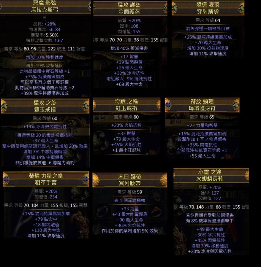 畢業+3等級.74%持續傷武器 /頭盔-渾沌傷/項鍊雙勢力混沌寶石+1.混沌持續傷