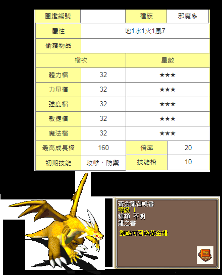 黃金龍召喚書=1隻400(交易時給你召喚書)