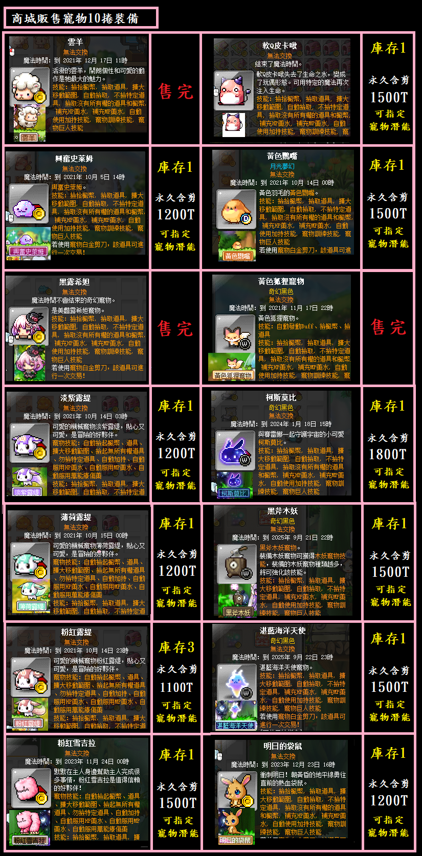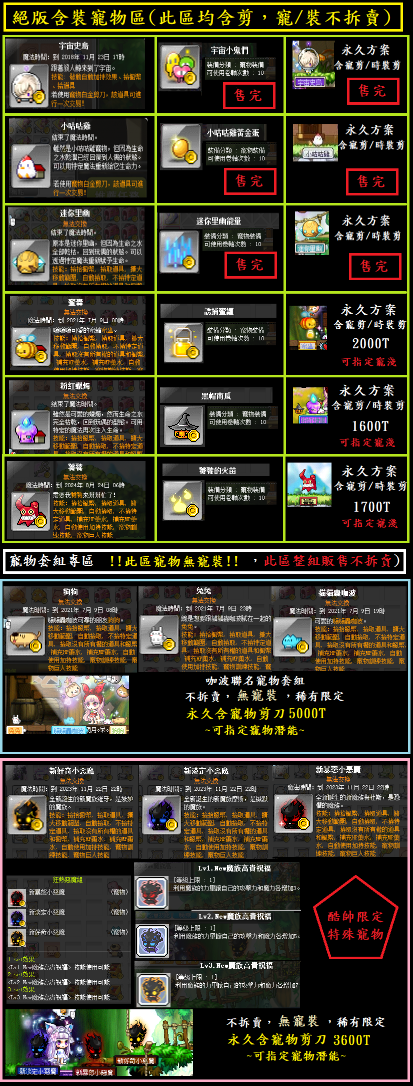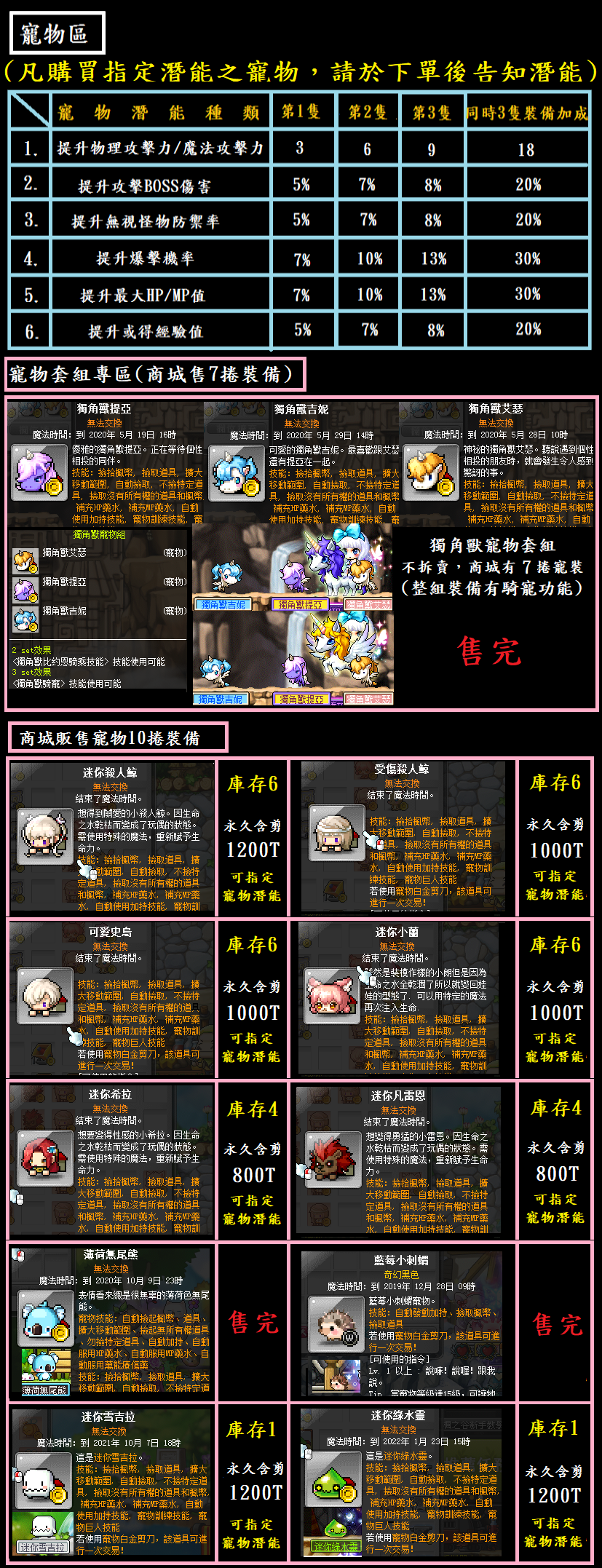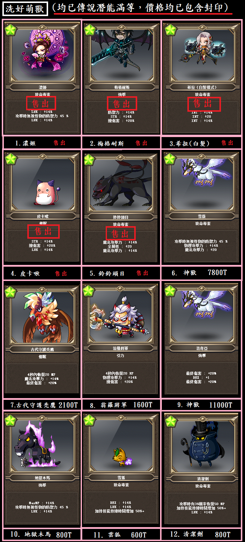 道具 【玥-3館】 !更新特價! 稀有滿等未開萌獸/梅杜莎艾畢神獸/機器人/咖波機器人/稀有寵物