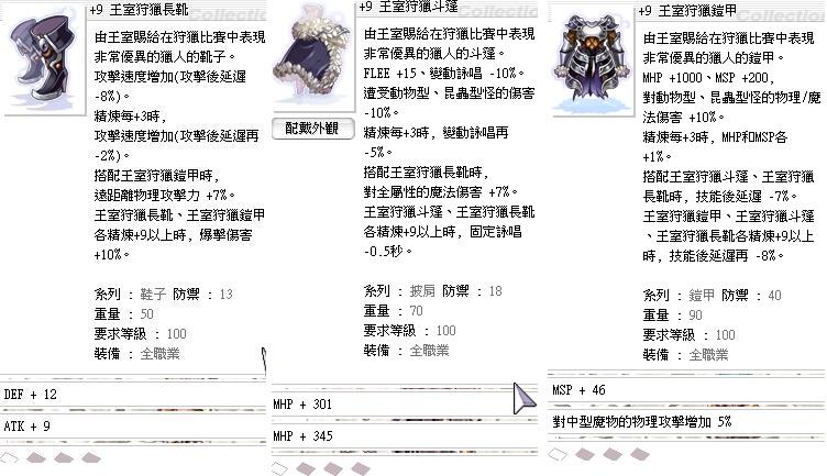 +9 100級可穿的裝備 +9王室狩獵長靴/+9王室狩斗篷/+9王室狩鎧甲