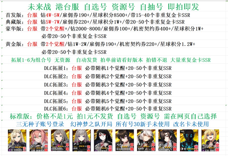全 8591 首家 未來戰 自抽號初始號港台服繁中版counter side自選組合國際服自抽