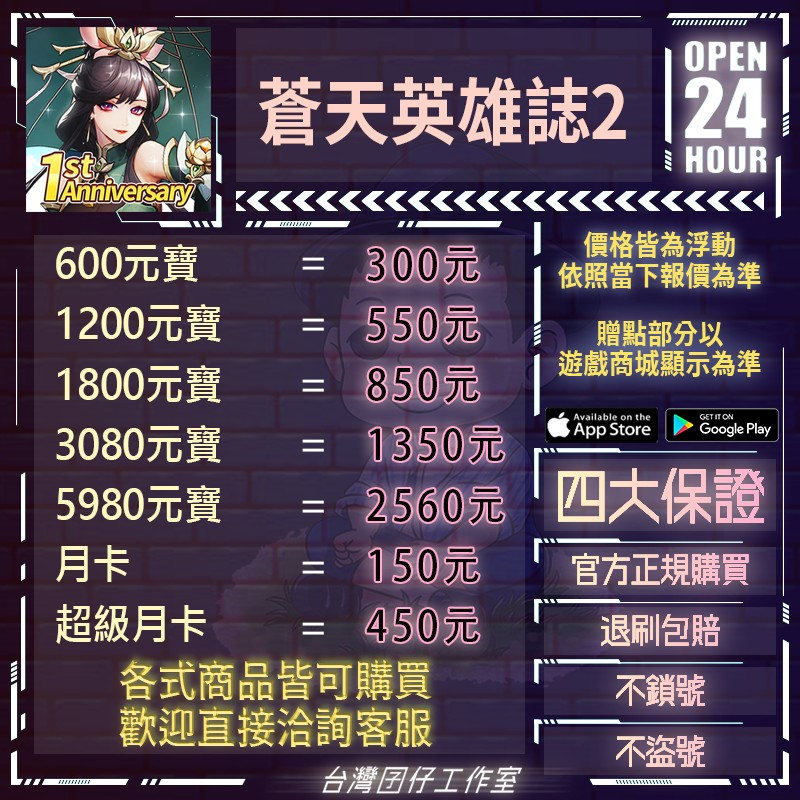 代儲【600元寶=300元】 🏆24H客服🏆現貨秒出🔥台灣囝仔🔥蒼天英雄誌2🔥20萬保證金