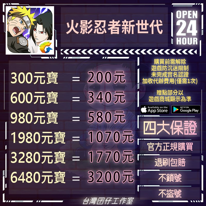 代儲【180元寶=150.NT】 🏆24H客服🏆現貨秒出🔥台灣囝仔🔥火影忍者新世代陸服🔥實名認證
