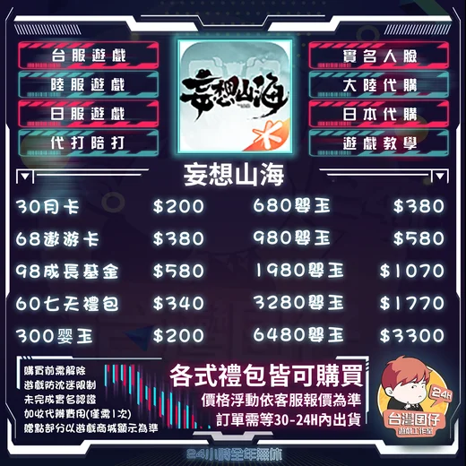 代儲【6480嬰玉=3200元】 🔥妄想山海陸服🏆24H客服🏆現貨秒出🔥台灣囝仔