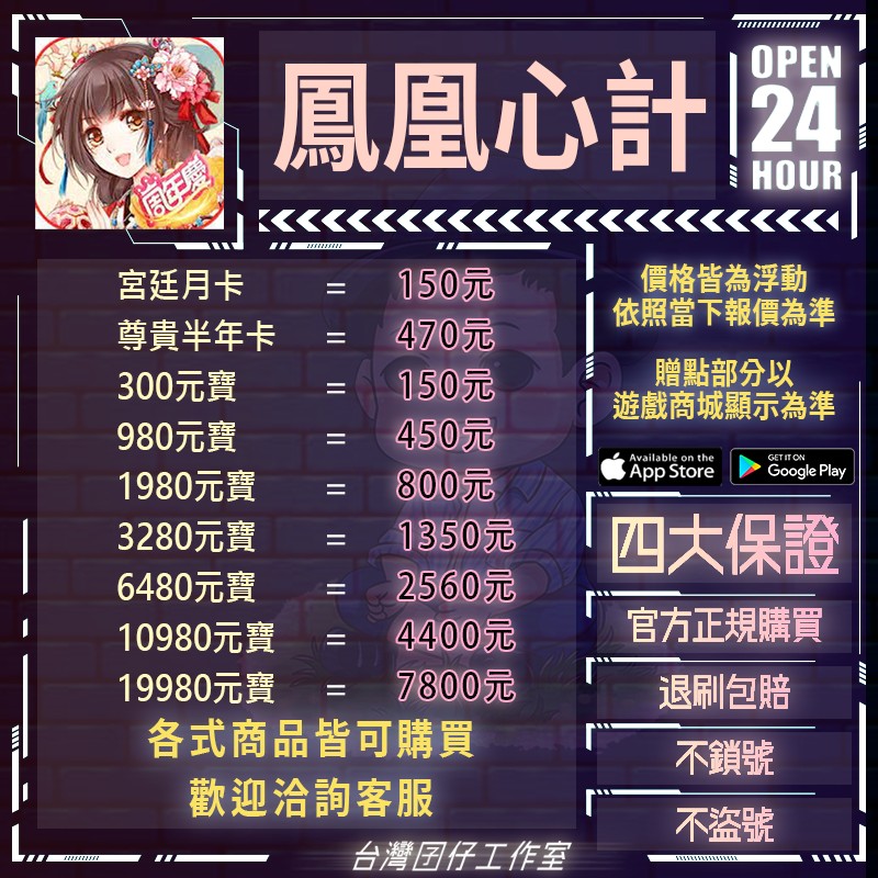 代儲【300元寶=150.NT】 🏆24H客服🏆現貨秒出🔥台灣囝仔🔥鳳凰心計🔥20萬保證金