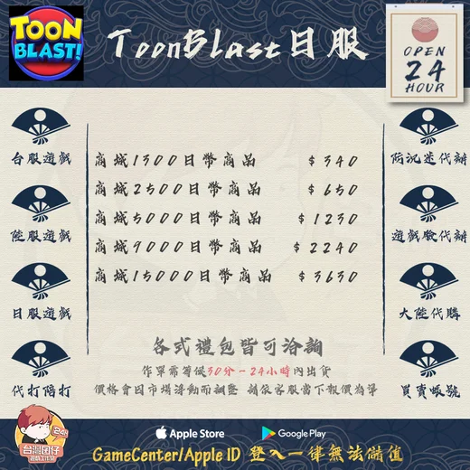 代儲【500金幣=170元】 🏆24H客服🏆Toon Blast🔥現貨秒出🔥台灣囝仔🔥退刷包賠🔥