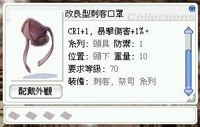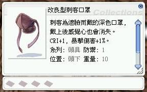 道具 改良型刺客口罩_頭下_DEF+1_CRI+1_暴傷+1%_十字斬首者_暴力大主教
