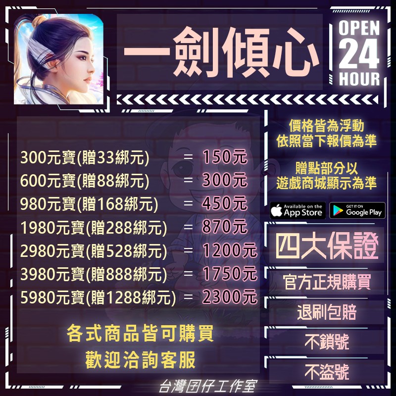 代儲【300元寶(贈33綁元)】 🏆24H客服🏆一劍傾心🔥現貨秒出🔥台灣囝仔🔥退刷包賠🔥