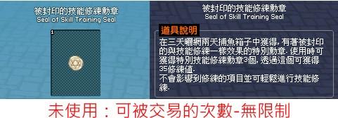 商城道具 【新瑪奇】 █【被封印的技能修練勳章x1】█可得3個(35)特別技能修練勳章