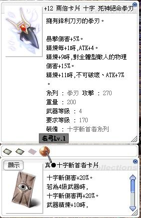 道具 +12死神絕命拳刃(已插兩張真●十字斬首者卡片/附魔名弓)可配苗娃佩瑞絲粉末墜飾