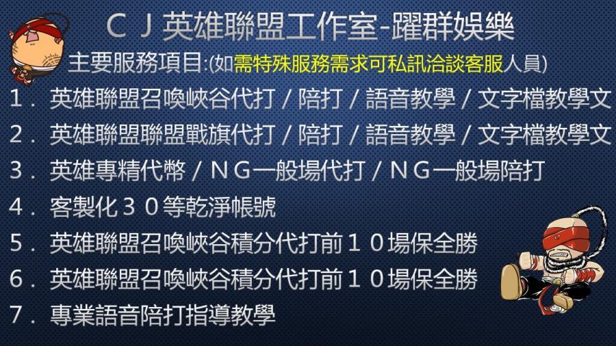 👑本店帳號為CJ職業工作室打手專用代練/陪打專用帳號,品質安全有保障